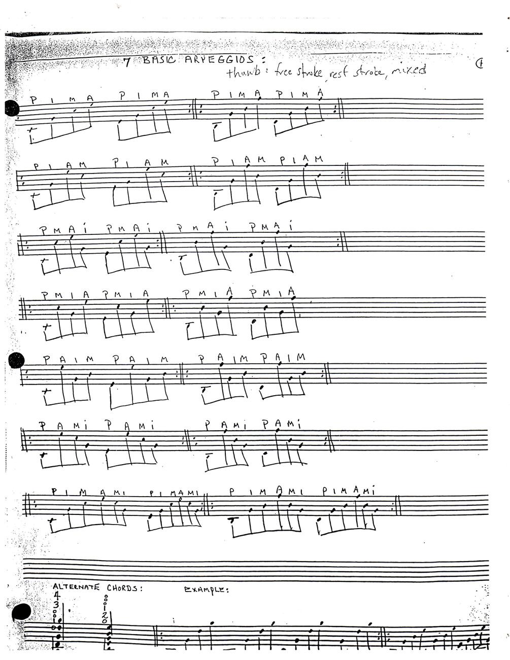 Seven basic arpeggios by Robert Guthrie (1943-2023). Robert (Bob) Guthrie was a world-class guitarist, international concert artist, teacher, and composer who was the second person in the United States to receive a degree in classical guitar performance under a scholarship recommendation of Andres Segovia to study with Jesus Silva at the North Carolina School of the Arts (B.M. 1969). He studies also included Andres Segovia, Jose Tomas, Celedonio Romero, and Alirio Diaz.